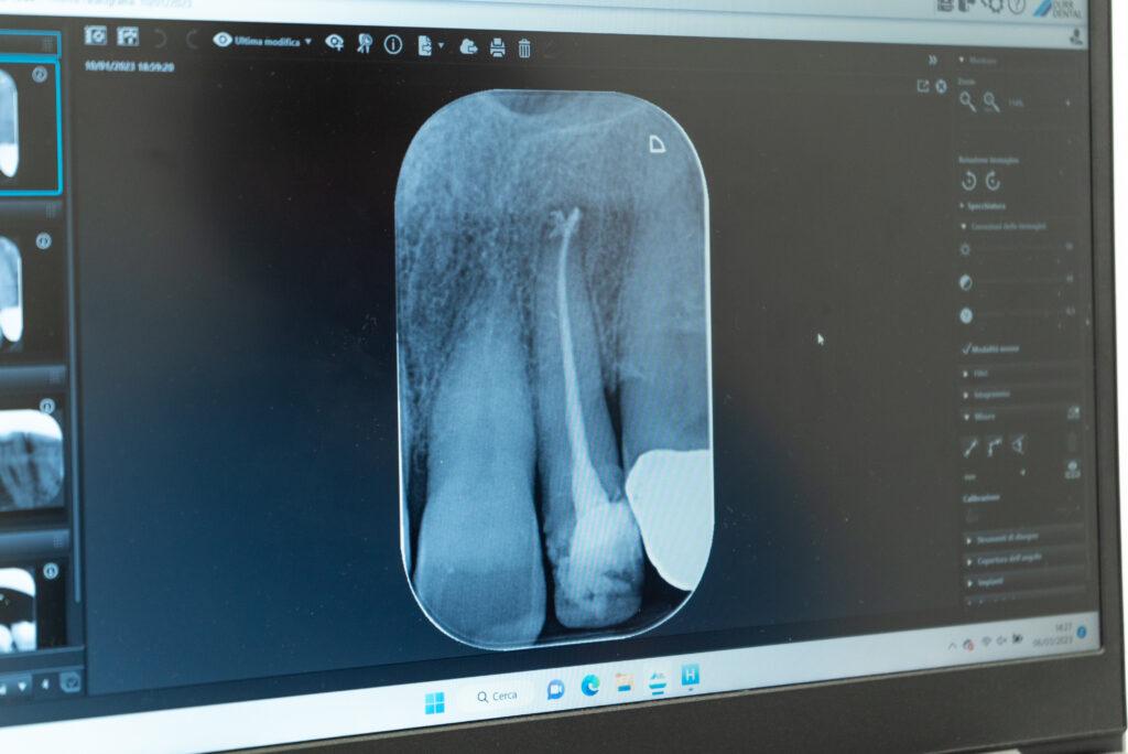 Per ritrattamento canalare si intende il rifacimento di una devitalizzazione. Questo avviene quando in precedenza non è stato sigillato completamente il canale oppure quando per cause batteriche si crea un’infezione cronica all’apice della radice, che può causare un ascesso. La tecnica prevede la rimozione del materiale precedente, la disinfezione con lavaggi del canale radicolare, che infine verrà sigillato nuovamente in maniera corretta per tutta la sua lunghezza.